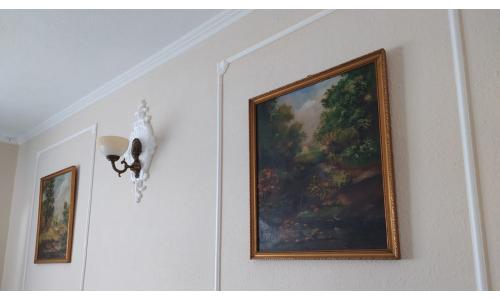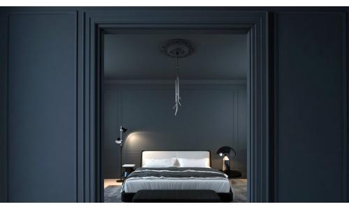 A szoba feltűnő dísze a Bácsalmás RZS-1 mennyezeti stukkó. A polisztirol stukkó kiemeli a lámpák és fények hatását, de üres fal- és mennyezeti felületek díszítésére is tökéletesen alkalmas.