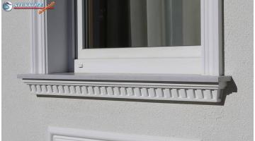 Az ablakpárkány az ablakdíszítés nélkülözhetetlen része. Egyrészt funkcionális tekintetben fontos, hiszen az ablakpárkány gondoskodik az ablakok körüli víz elvezetéséről. Másrészt egy ablakpárkány optikai szempontból is jelentős: a külső ablakpárkány teszi ugyanis teljessé az ablakkeret díszítését. A fent említett ablakpárkány stukkóhoz kínálunk mintában harmonizáló keretező díszléceket, homlokzati stukkókat, timpanonokat. Minden ablakpárkányprofil rendelkezik természetesen egy vízorral, hogy az esővíz ne a házhomlokzatra folyjon. A vízorrnak köszönhetően a homlokzat tiszta és száraz marad.