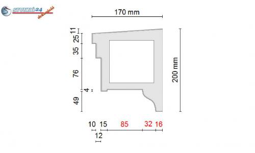 A metszeti rajzon kérjük jelölje be a kültéri stukkó díszléc ragasztási felületét.