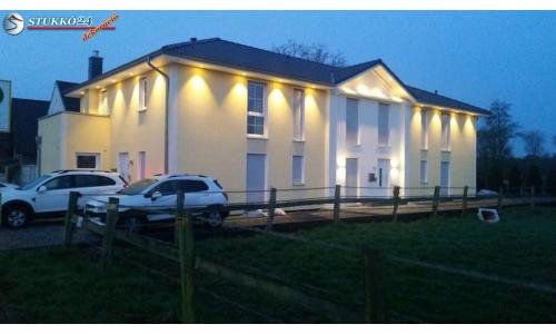 A fenti képeken látható új építésű társasház homlokzatának tervezése során az építész szabad kezet kapott. Elegancia és könnyedség – ez a két meghatározó fogalom vezérelte a tervezőt a stukkó elemek kiválasztásakor. A stílusos kültéri díszlécek és visszafogott homlokzati elemek harmónikus egységet alkotva díszítik a homlokzatot.