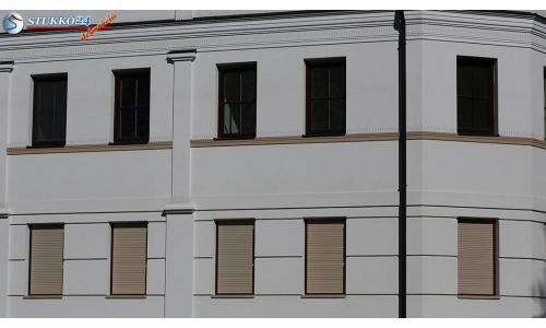 A projekt központi témája volt az energiatudatos építőanyagok használata. Egyértelmű volt, hogy a homlokzat díszítéséhez is olyan termékekre lesz szükség, melyek támogatják az épület hőszigetélését. Kiváló választás volt tehát a beruházó részéről homlokzatdíszítéshez a polisztirol kültéri stukkó. A polisztirol ugyanis, melyből díszléceinket gyártjuk, rendkívül jó hőszigetelő tulajdonságokkal bír. Annak érdekében, hogy a stukkóprofilok kültéri homlokzatdíszítéshez is biztonsággal alkalmazhatóak legyenek, azaz az időjárás viszontagságaival és a mechanikai sérülésekkel szemben ellenállóak legyenek, üzemünkben gépesített technikával kéregbevonattal látjuk el őket. A kéregbevonatnak köszönhetően a kültéri stukkó díszeket beépítés után csupán egy vízbázisú festékkel kell a kívánt színre festeni. Még alapozásra sincs szükség.