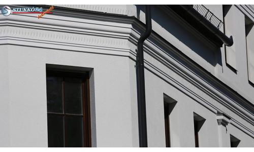 Ahogyan szériaként gyártott kültéri díszléceinkhez, úgy az egyedi gyártású stukkóprofilokhoz is ajánlottunk ügyfelünknek a díszlécekhez méretben és mintában pontosan illeszkedő, előregyártott kiegészítőelemeket. A homlokzatdíszek beépítését nagyban meggyorsítja ugyanis, ha például egy osztópárkány esetében, melyet a homlokzat minden oldalán beépítenek, a sarkok mentén nincs szükség időigényes helyszíni gérvágásokra, hanem lehetőség van előregyártott, kész sarokelemet használni. A beépítési idő mellett a másik fontos tényező a homlokzatdíszek minősége. Egy építkezésen, ahol szorítanak a határidők, sajnos könnyen előfordulhat, hogy egy vágás nem sikerült tökéletesre. Az üzemi körülmények között gyártott kiegészítőelemek viszont biztosan pontos méretű és igényesen gyártott termékek, melyek megkönnyítik az épületdíszítést.