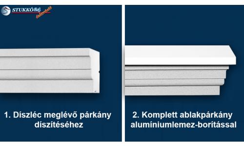 Komplett ablakpárkány alumíniumlemez-borítással és stukkó díszítéssel