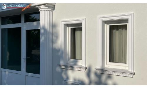 Látványos kültéri ablakdíszítés polisztirol stukkóval, mely az alábbi termékek felhasználásával készült: