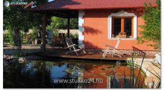 Fesse le a kültéri stukkó felületét vízbázisú homlokzatfestékkel. A stukkó festéséhez NE használjon alapozót!