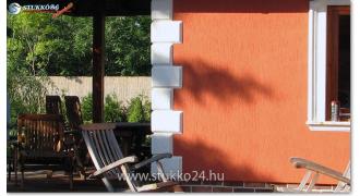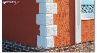 A sima polisztirol kváderkő egy speciális kivitele az ütésálló kérgesített dísztégla gérvágással. Ezeket a letisztult dísztéglákat is kéreganyaggal vonjuk be, mely a kültéri stukkókat ellenállóvá teszi. A dísztéglák felső oldaluk 3 oldalát 45 fokos szögben vágtuk el. A 4. oldal felül egyenes vonalban végződik és az alsó élhez 45 fokos szögben csatlakozik. A gérvágás lehetővé teszi Önnek, hogy a dísztéglákat úgy építse be a házhomlokzaton, hogy azok egyenletesen 90 fokos szöget zárjanak be.