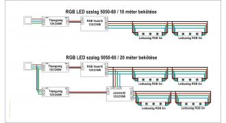 Példa kapcsolási rajz 10 m ill. 20 m RGB LED szalag bekötéséhez