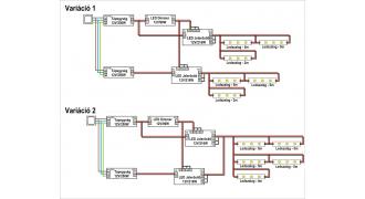 Példa kapcsolási rajz 24 m LED szalag 5050-60 meleg fehér bekötéséhez