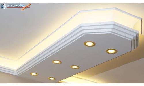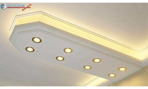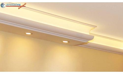 Direkt világításra van szüksége LED izzókkal dolgozószobájába vagy konyhájába? L-formájú LED világítás kialakítására alkalmas polisztirol díszléceink egyszerű és dekoratív megoldást nyújtanak a direkt világítás megvalósításához a fal mentén beépítve. Ez egy kombiprofil. Az L-formájú LED stukkó egy alaplapból (alsó rész) és egy díszlécből (mintás rész) áll. Amennyiben LED izzókat szeretne a fal mentén beépíteni, a LED stukkó időt és munkát spórol Önnek.