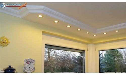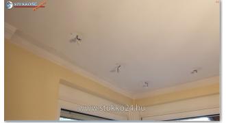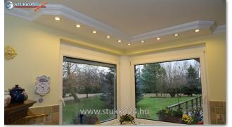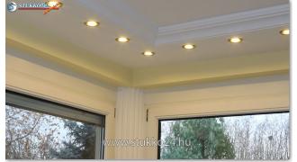 Polisztirol stukkóba épített spot lámpák mennyezeten és oldalfalon