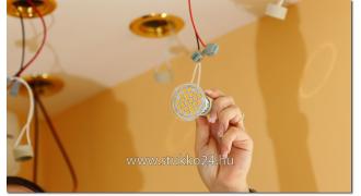 A következő képeken megmutatjuk Önnek, milyen egyszerűen beszerelhető a LED spot a polisztirol díszlécbe. A lámpa kereteket, foglalatokat és vezetékeket megtalálja online shopunkban.