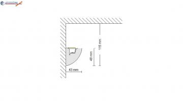 A rejtett világítás kialakítására alkalmas Kecskemét 204 egy praktikus és dekoratív díszléc. A stukkó belső bemetszésébe az alumínium LED reflektorléc és LED szalag mellett a plexicsíkot is beépítheti, mely a LED szalagot védi a portól.