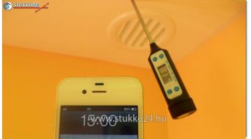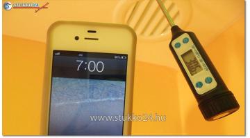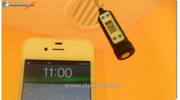 Díszléceinket zárt cellaszerkezetű XPS alapanyagból gyártjuk. Az alapanyag 70 ºC-os hőmérsékleten kezd olvadni. Megmértük a LED világítás és tápegység által kibocsátott hőt, melyeket díszléceinkbe építettünk be. A hőmérsékletet 7 órakor, 8 órakor, 11 órakor és 15 órakor mértük. A mérési eredményeket a képeken látja. A hőmérséklet 37,6 ºC-ig emelkedik, mégis a normál tartományban marad. Kérem gondoskodjon a LED világítás kiépítésénél a megfelelő szellőzésről. Egyeztessen villanyszerelővel, aki a LED világítást beszereli. Az Ön biztonsága érdekében tervezzen vele együtt.