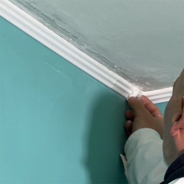 3. Stukkóragasztóval rögzítjük a fal–mennyezet találkozásához