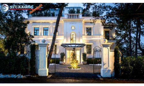 A polisztirolból készült kültéri stukkó szinte bármilyen formában és méretben gyártható. Az épület karakterét remekül lehet a megfelelő stukkó díszítőelemekkel hangsúlyozni. A felújított Rodostó-villa egy ízléses, klasszikus stílusban, stukkóval gazdagon díszített homlokzatot kapott.