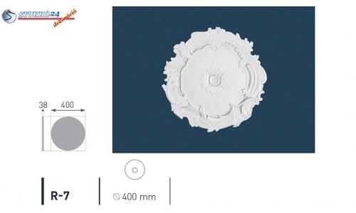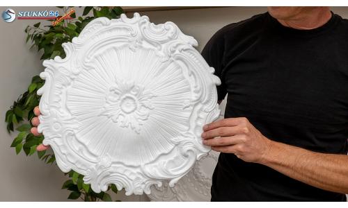 Az R7 stukkó rozetta közepét sugár alakban levelek díszítik. A rozetta széle levélformában van kidolgozva. Ez a klasszikus stílusban díszített polisztirol rozetta hangsúlyozza a lámpa szépségét, de tökéletesen alkalmas mandalaként a díszítés nélküli fal és mennyezet felületén. A rozettát polisztirol ragasztóval rögzítheti a mennyezetre és egy Önnek tetsző színárnyalatra festheti. Kérem a polisztirol termékekhez csak vízbázisú festéket használjon!