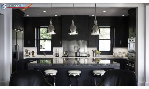 A modern konyha dekoráció stukkó díszléccel fekete színű konyhában is kivitelezhető, ahogy a 2. képen látható. Egy stílusosan berendezett fekete konyha inox konyhai kis- és nagygépekkel, kiegészítőkkel és a Sopron 11 stukkó díszléccel a visszafogott eleganciát képviseli. Polisztirol díszléceink vízbázisú festékkel festhetők, így a stukkó díszlécek minden konyha dekor ötlet stílusos kiegészítői.
