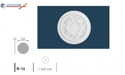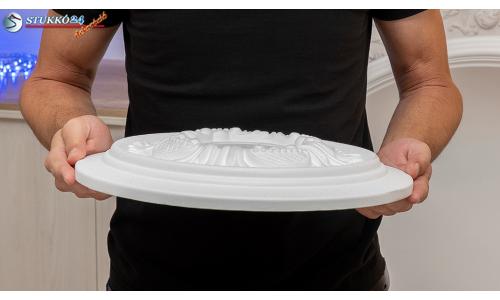 Az R14 stukkó rozettát a díszítés nélküli középpontja körül virágok és levelek díszítik. A perem és a virágminta között több díszítetlen kör húzódik. A csodás rozetta kihangsúlyozza a lámpa szépségét, és tökéletesen alkalmas mandalaként üres fal és mennyezet díszítésére is. A rozettát polisztirol ragasztóval rögzítheti a mennyezetre és egy Önnek tetsző színárnyalatra festheti. Kérem a polisztirol termékekhez csak vízbázisú festéket használjon!