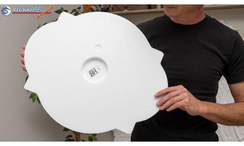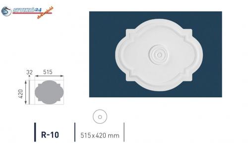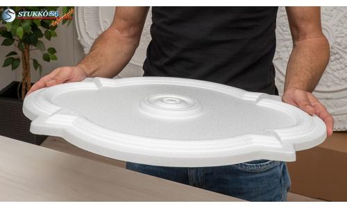 Az ovális R10 stukkó rozettát 4 kis kidolgozott sarok díszíti. A stukkóprofil gondosan kidolgozott és a szélek körvonalát követi. A rozetta közepét 3 egyszerű kör alkotja. A nagyon diszkrét rozetta egyedi karakterrel rendelkezik és kihangsúlyozza a lámpa szépségét, de tökéletesen alkalmas üres fal és mennyezet díszítésére is. A rozettát polisztirol ragasztóval rögzítheti a mennyezetre és egy Önnek tetsző színárnyalatra festheti. Kérem a polisztirol termékekhez csak vízbázisú festéket használjon!